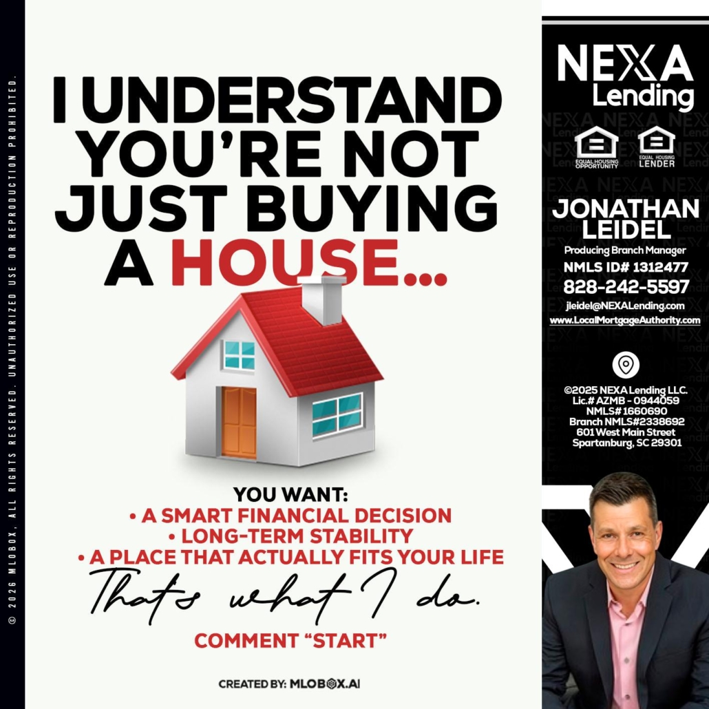 Hi, my name is Jonathan Leidel. I’m a Loan Officer with NEXA Lending LLC., offering personalized mortgage solutions, fast customized quotes, great rates and service with integrity.