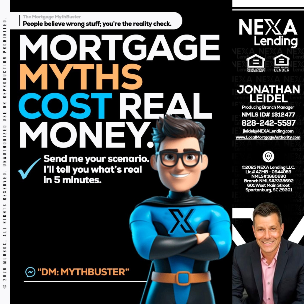 MORTGAGE MYTHS - Jonathan Leidel -Producing Branch ManagerHi, my name is Jonathan Leidel. I’m a Loan Officer with NEXA Lending LLC., offering personalized mortgage solutions, fast customized quotes, great rates and service with integrity.