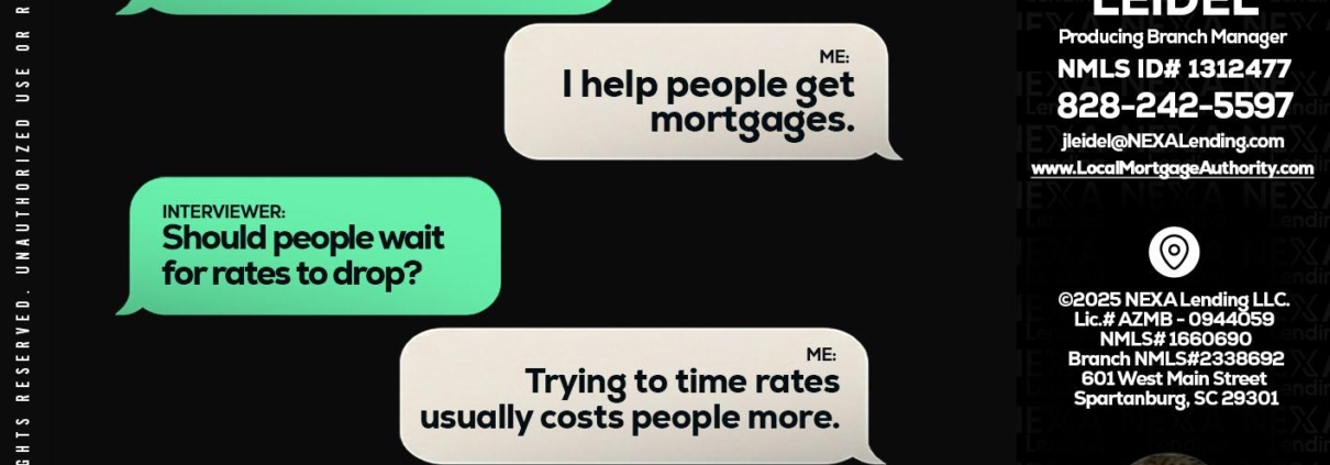 Hi, my name is Jonathan Leidel. I’m a Loan Officer with NEXA Lending LLC., offering personalized mortgage solutions, fast customized quotes, great rates and service with integrity.