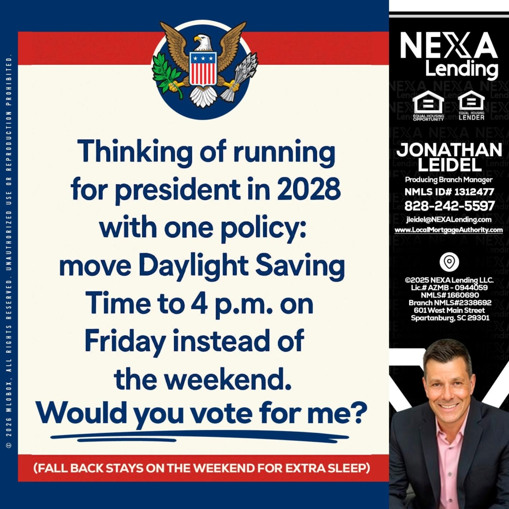 Hi, my name is Jonathan Leidel. I’m a Loan Officer with NEXA Lending LLC., offering personalized mortgage solutions, fast customized quotes, great rates and service with integrity.