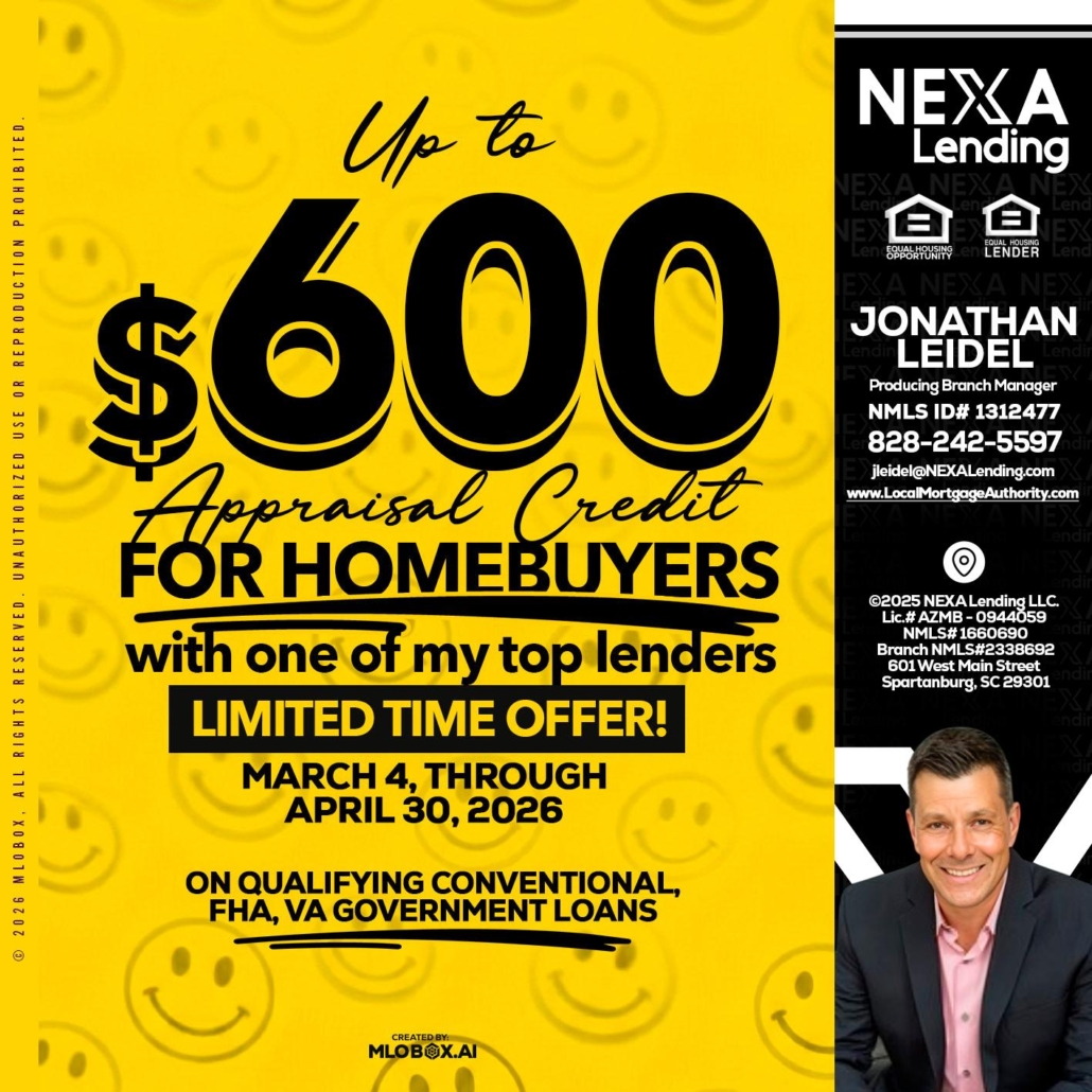 Hi, my name is Jonathan Leidel. I’m a Loan Officer with NEXA Lending LLC., offering personalized mortgage solutions, fast customized quotes, great rates and service with integrity.