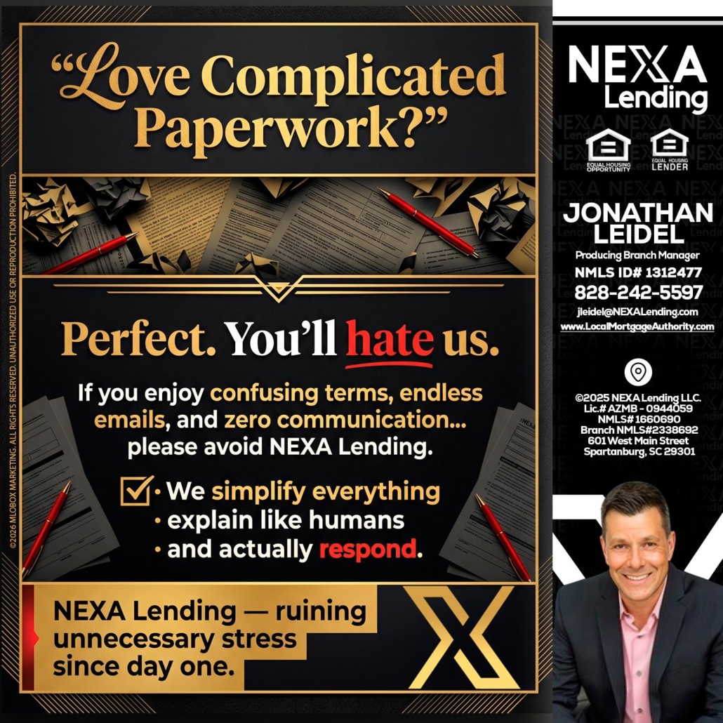 Hi, my name is Jonathan Leidel. I’m a Loan Officer with NEXA Lending LLC., offering personalized mortgage solutions, fast customized quotes, great rates and service with integrity.